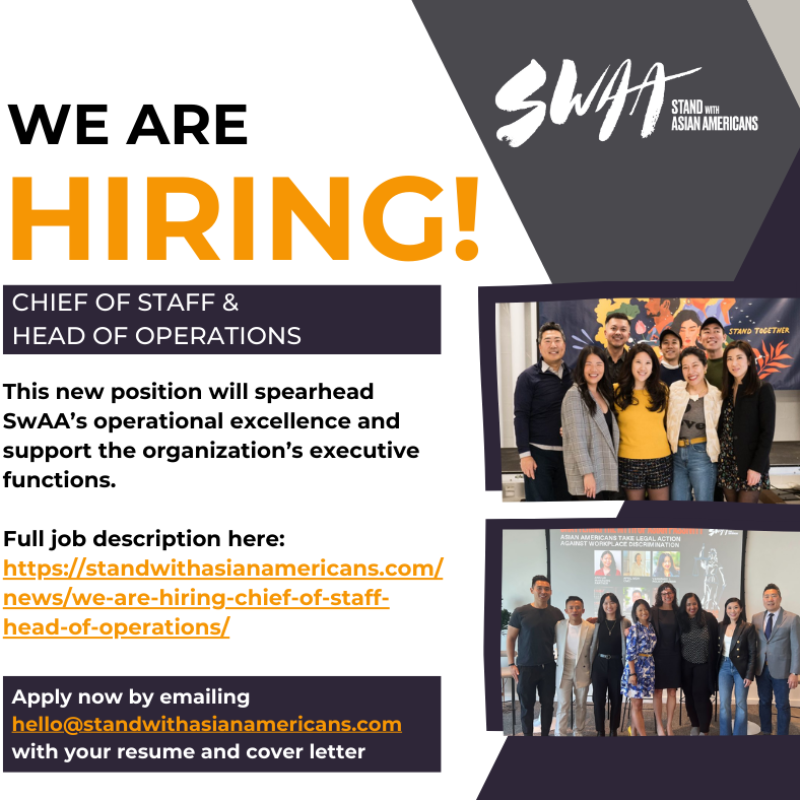 You will support and lead our team in advancing SwAA’s vision of a society where Asian Americans can live with dignity and belonging, free from discrimination.